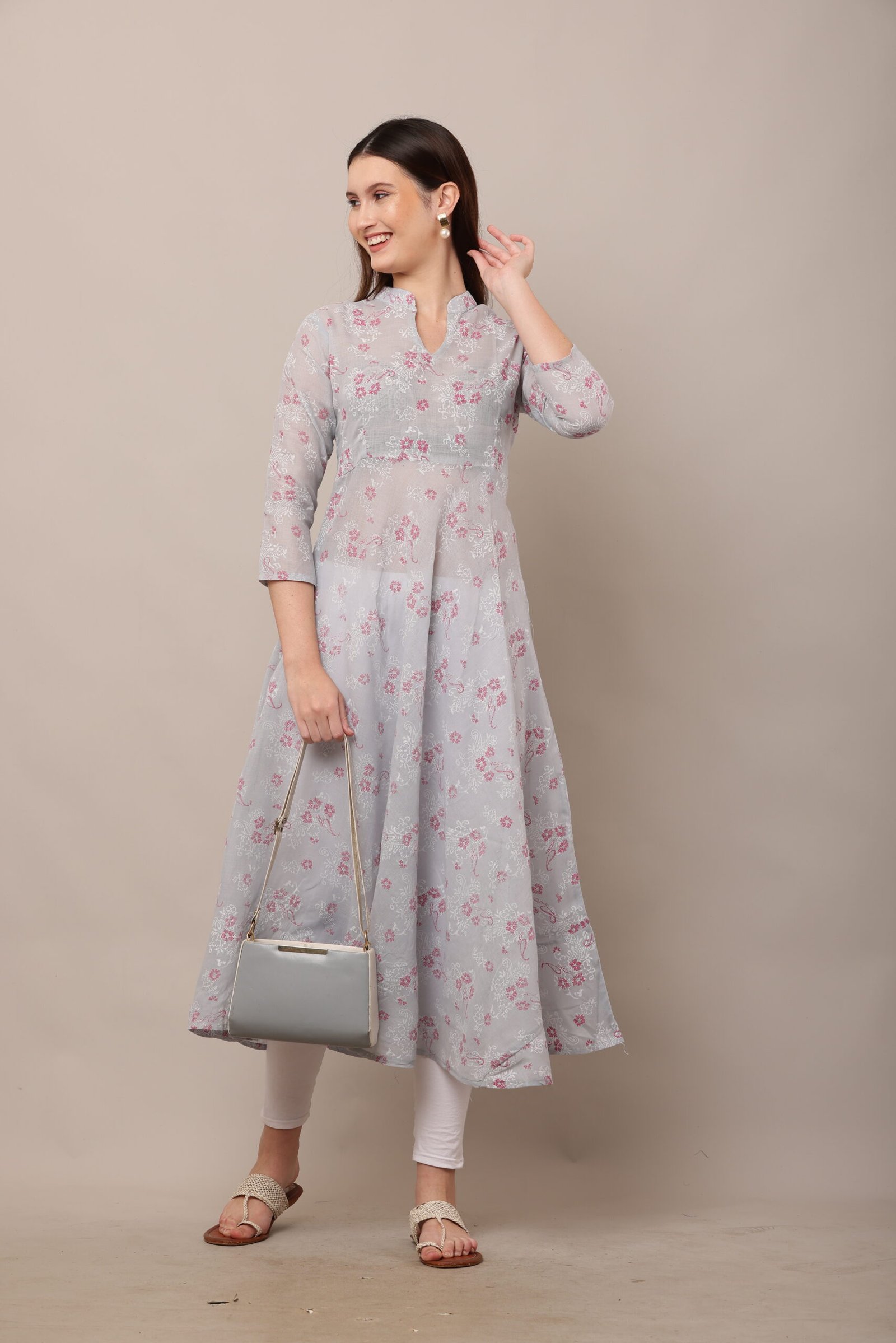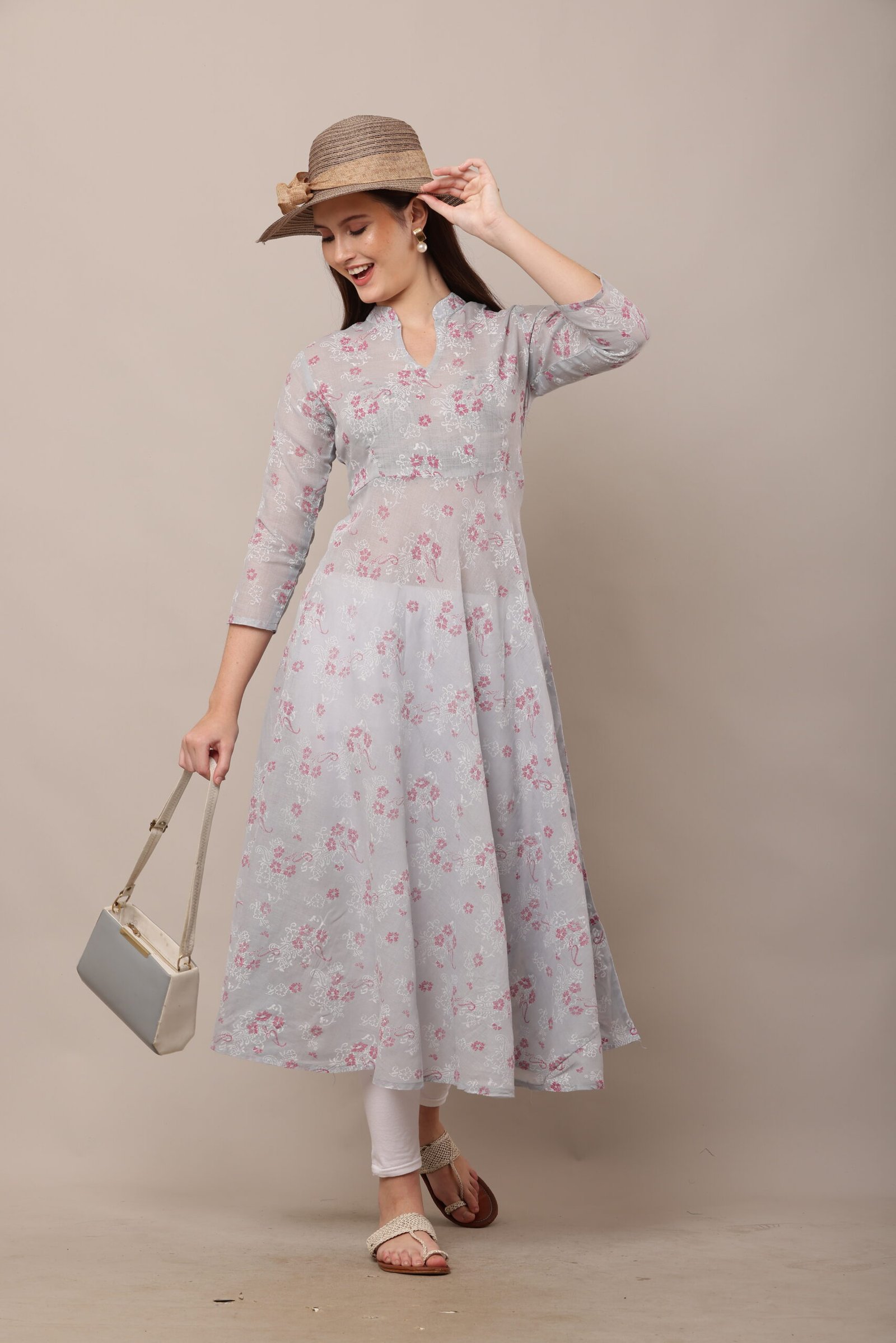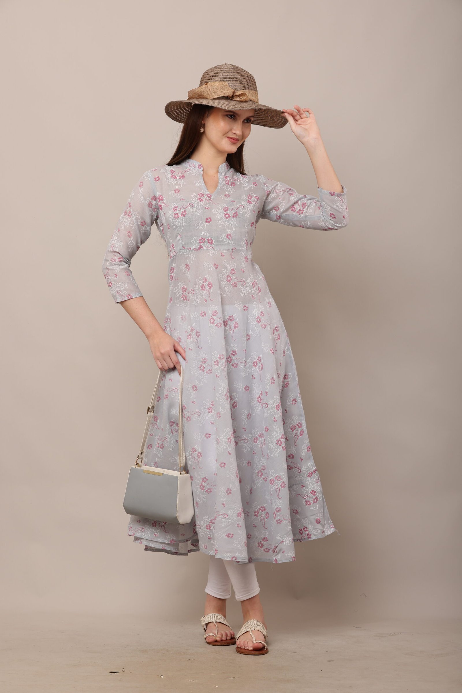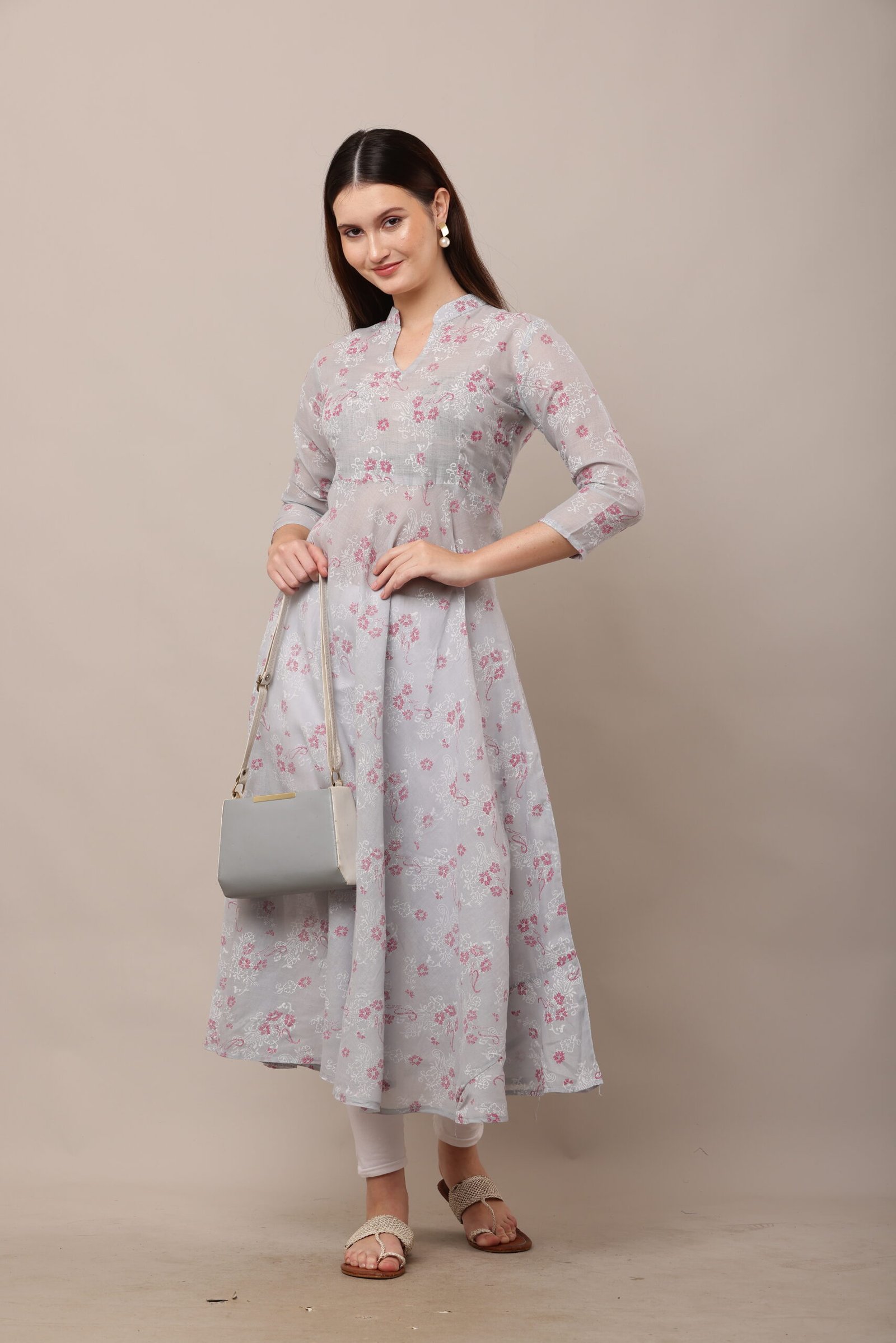 - The PSG-A37 Block Printed Cotton Anarkali features a captivating block-printed design, a traditional Indian art form that showcases intricate patterns created by skilled artisans. The block prints are meticulously crafted, adding a touch of cultural heritage to the dress. The 3/4 sleeves lend a sophisticated yet practical touch, making the dress suitable for both warm and cooler weather.