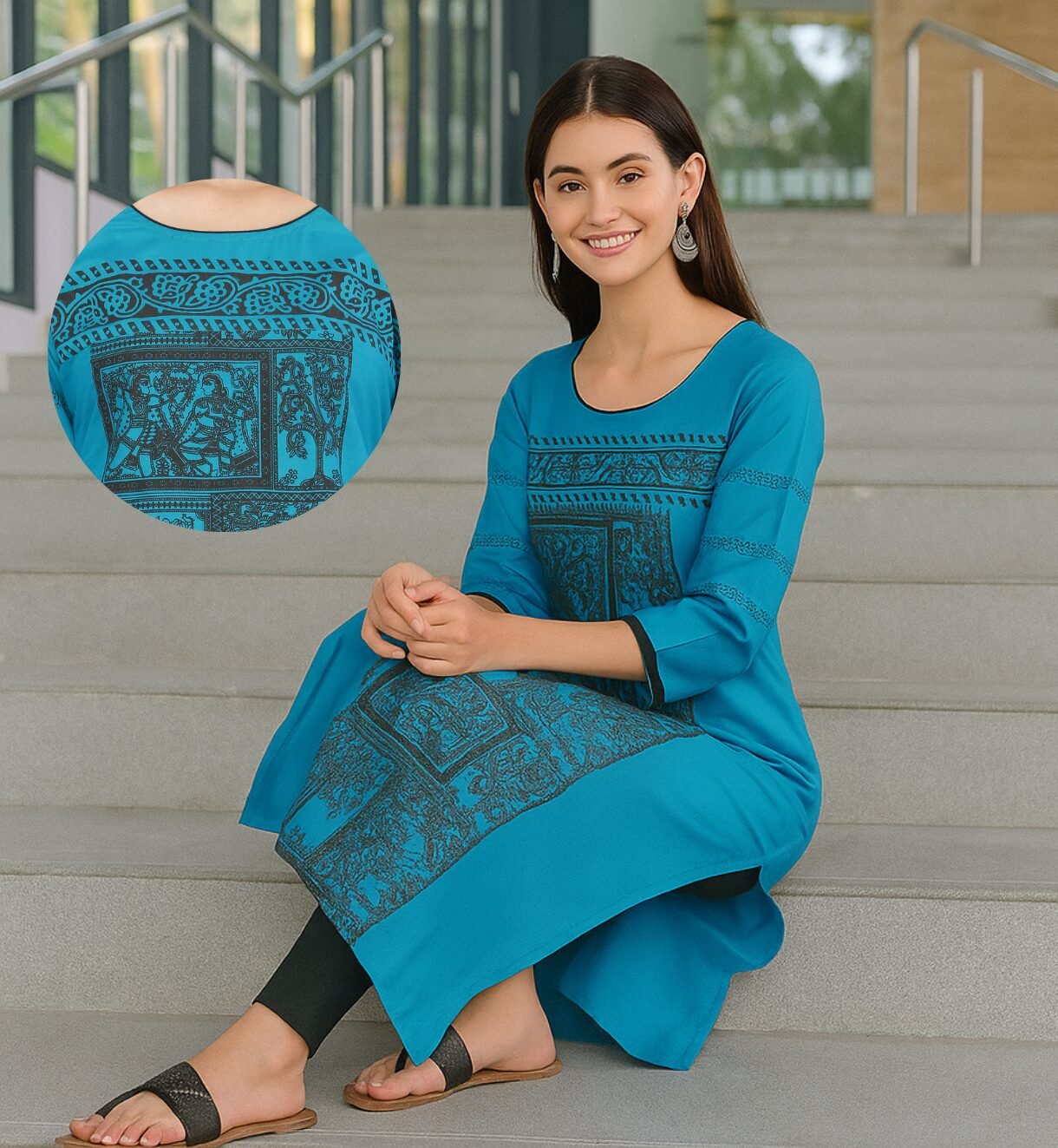 - Classic Straight Cut: The kurti’s straight silhouette exudes timeless elegance, making it easy to style for both casual and semi-formal occasions. Pair it with your favorite bottoms for a complete look.
