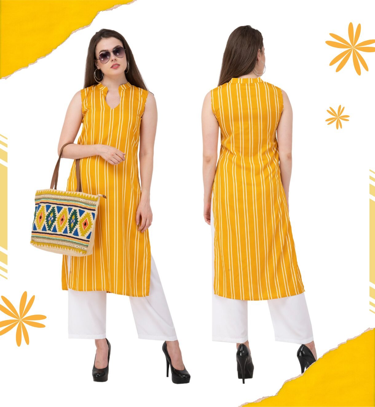 - Straight-Cut Silhouette: The classic straight cut enhances versatility, allowing you to pair this kurti with various bottoms for casual or semi-formal occasions, ensuring effortless elegance.